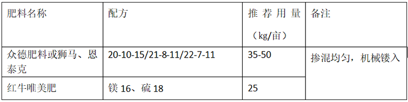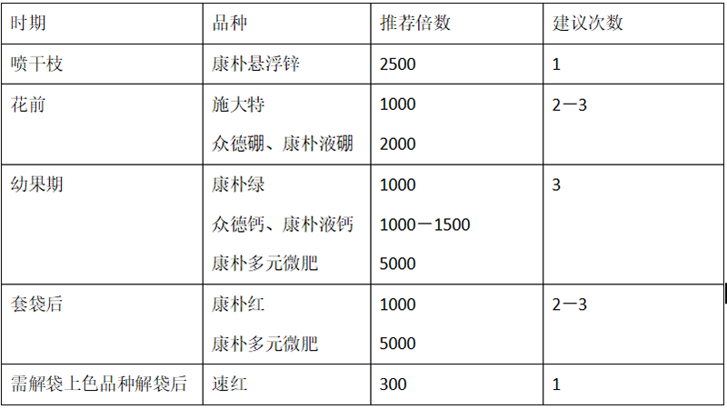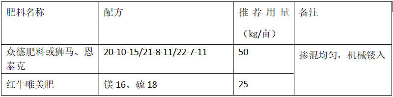 (2)推薦施肥套餐(根據目標產量、地域、品種、樹勢、樹齡、地力等適當調整)