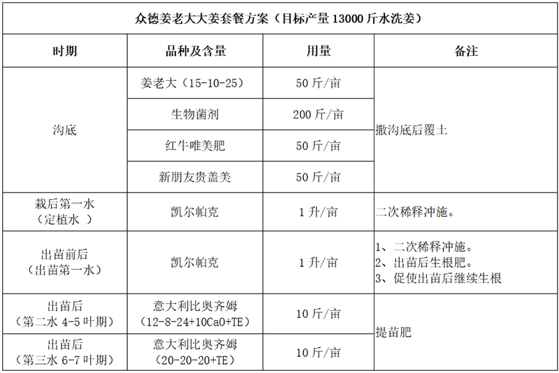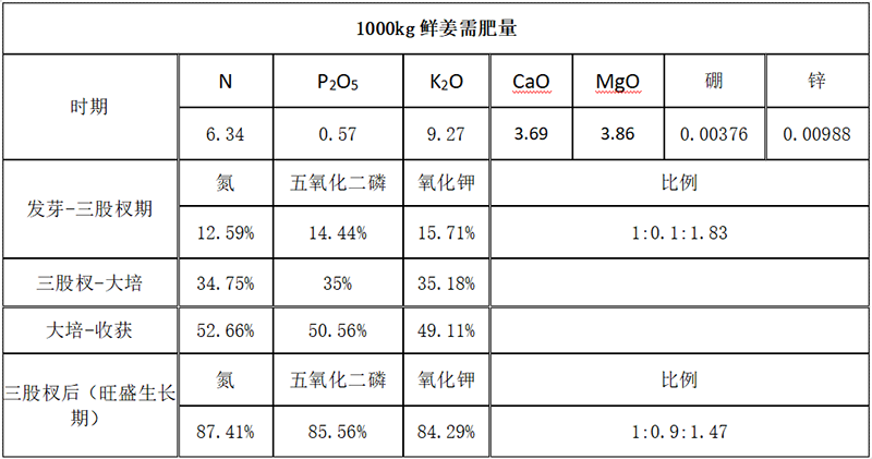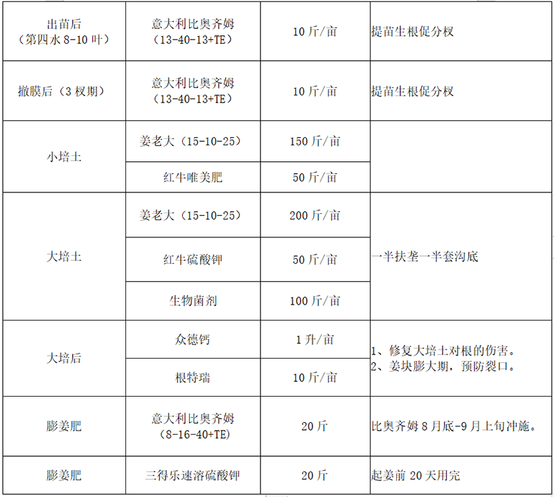 ?。?)大、中、微量元素兼顧:大姜除對氮磷鉀的需求外,對鈣、鎂需求也很大,中量元素鈣鎂及微量元素應(yīng)早施。