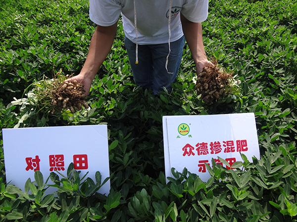 沂南縣辛集北左泉村農(nóng)民顧守武,去年用眾德(16-12-14)120斤/畝,生物有機(jī)肥80斤/畝,新朋友貴蓋美30斤,持力硼2袋,在翻地前一次性施入,到9月10號(hào)收獲期測(cè)產(chǎn)1173斤,與對(duì)照田產(chǎn)量1055斤相比,畝增產(chǎn)118斤,增產(chǎn)幅度11.2%。顧先生滿(mǎn)臉喜悅的說(shuō):“用眾德花生高產(chǎn)套餐方案效果非常好,歸功于眾德系列肥料原料考究,配方合理,營(yíng)養(yǎng)全面,對(duì)于重茬、土壤酸化等問(wèn)題障礙能夠得到有效解決,改良并活化土壤,特別是態(tài)康科、康樸系列葉面肥,能促進(jìn)花生根系和葉片生長(zhǎng),補(bǔ)充硼、鉬、鈣等中微肥,提高座果率、改善品質(zhì),提高產(chǎn)量,農(nóng)民最終獲得收益”