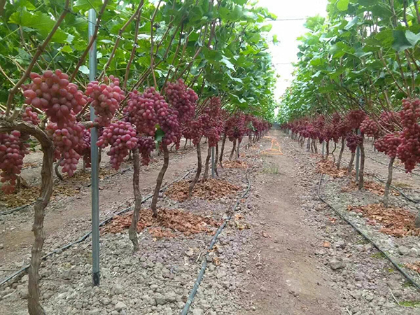 2015年10月20號,山東龍口市諸由觀鎮(zhèn)舒師傅的克瑞森葡萄喜獲豐收,通過專家現(xiàn)場測產(chǎn),4畝3年生示范園的畝產(chǎn)均在4000斤以上,而對照田只有3500斤,增產(chǎn)率達(dá)15%,今年畝效益超過2萬元。無論在果穗整齊度、顆粒大小、色澤、糖度、外觀上,示范園的葡萄均勝對照田一籌。